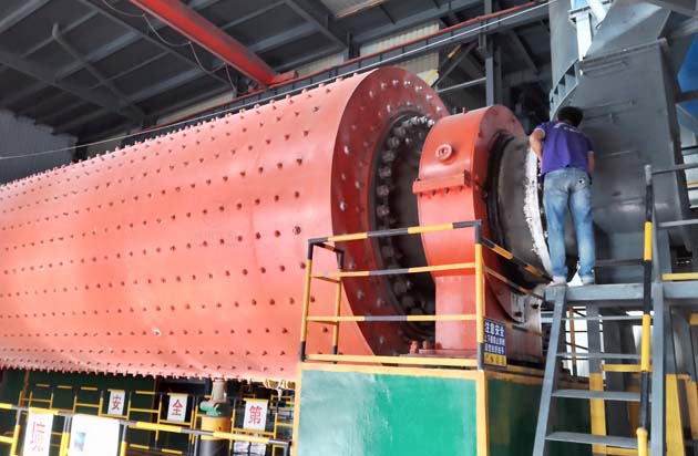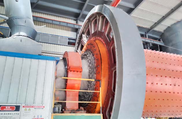 本機(jī)為圓筒形回轉(zhuǎn)裝置,外齒輪傳動(dòng),兩倉(cāng)格型球磨機(jī)。物料經(jīng)進(jìn)料空心軸螺旋,經(jīng)進(jìn)料裝置均勻進(jìn)入磨機(jī)第一倉(cāng)。 料倉(cāng)內(nèi)有梯形襯板或波紋襯板,內(nèi)部裝有不同規(guī)格的鋼珠。筒體旋轉(zhuǎn)產(chǎn)生離心力,將鋼球帶到一定高度后落下,從而對(duì)物料產(chǎn)生重?fù)艉脱心プ饔谩N锪显诘谝粋}(cāng)粗磨后,經(jīng)單倉(cāng)板進(jìn)入第二倉(cāng),單倉(cāng)內(nèi)鑲有平襯板,內(nèi)裝有鋼珠,對(duì)物料進(jìn)行進(jìn)一步研磨。 粉體通過卸料箅子排出,完成粉磨作業(yè)。水泥磨具有物料適應(yīng)性強(qiáng)、連續(xù)生產(chǎn)、破碎比大、粉磨產(chǎn)品細(xì)度調(diào)節(jié)方便等特點(diǎn)。水泥磨可采用濕法生產(chǎn),也可采用濕法生產(chǎn)。也可同時(shí)研磨和干燥。