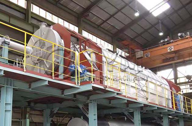 電磁回轉(zhuǎn)窯主要是由燃燒系統(tǒng)、控制系統(tǒng)、筒體、驅(qū)動(dòng)裝置、喂料和卸料系統(tǒng)等組成?;剞D(zhuǎn)窯作業(yè)時(shí),物料從窯尾進(jìn)入回轉(zhuǎn)窯。主傳動(dòng)機(jī)經(jīng)主減速機(jī)帶動(dòng)齒輪裝置傳遞動(dòng)力,驅(qū)動(dòng)回轉(zhuǎn)窯筒體轉(zhuǎn)動(dòng)。筒體具有一定的傾斜度,所以物料隨筒體轉(zhuǎn)動(dòng)而向四周方向移動(dòng)。被煅燒后的熟料進(jìn)入篦冷機(jī)冷卻。